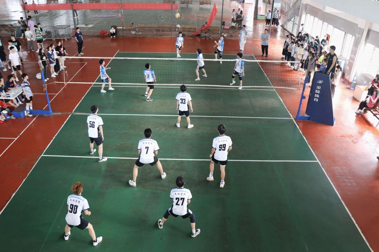 本站讯 5月4日下午,我校第二十二届球类运动会男子排球竞赛于我校东校区和健馆二楼1号场地举行,本场比赛由我院对战外国语学院(以下简称外院),共分为五场,采取五局三胜制。最终我院以3:0的大比分优势击败外国语学院。