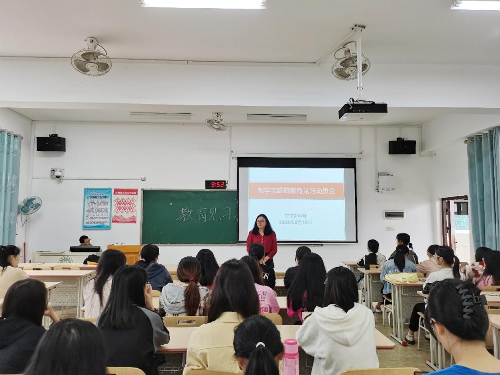 本站讯 为提升汉语言文学专业师范生教学能力、实践能力和综合素质。5月12日上午,我院汉语言文学214班于我校东校区至善楼607教室开展教学实践周教育见习动员会。本次班会由该班学习委员冯月梅主持,该班全体同学参与。