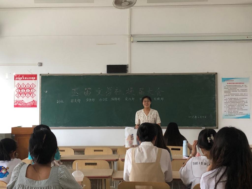 本站讯 6月4日下午,玉笛文学社在我校东校区至善楼301教室举行换届大会,会议由全体社干参加。