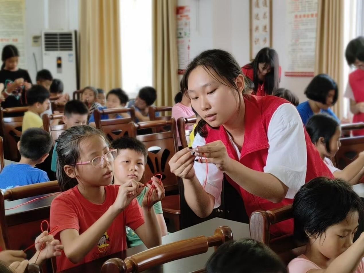 下午的手工课,支教团的志愿者们与小朋友们共同制作吉祥结。小朋友们都对吉祥结产生了浓厚的兴趣,争相学习制作方法,对自己制作的吉祥结爱不释手。