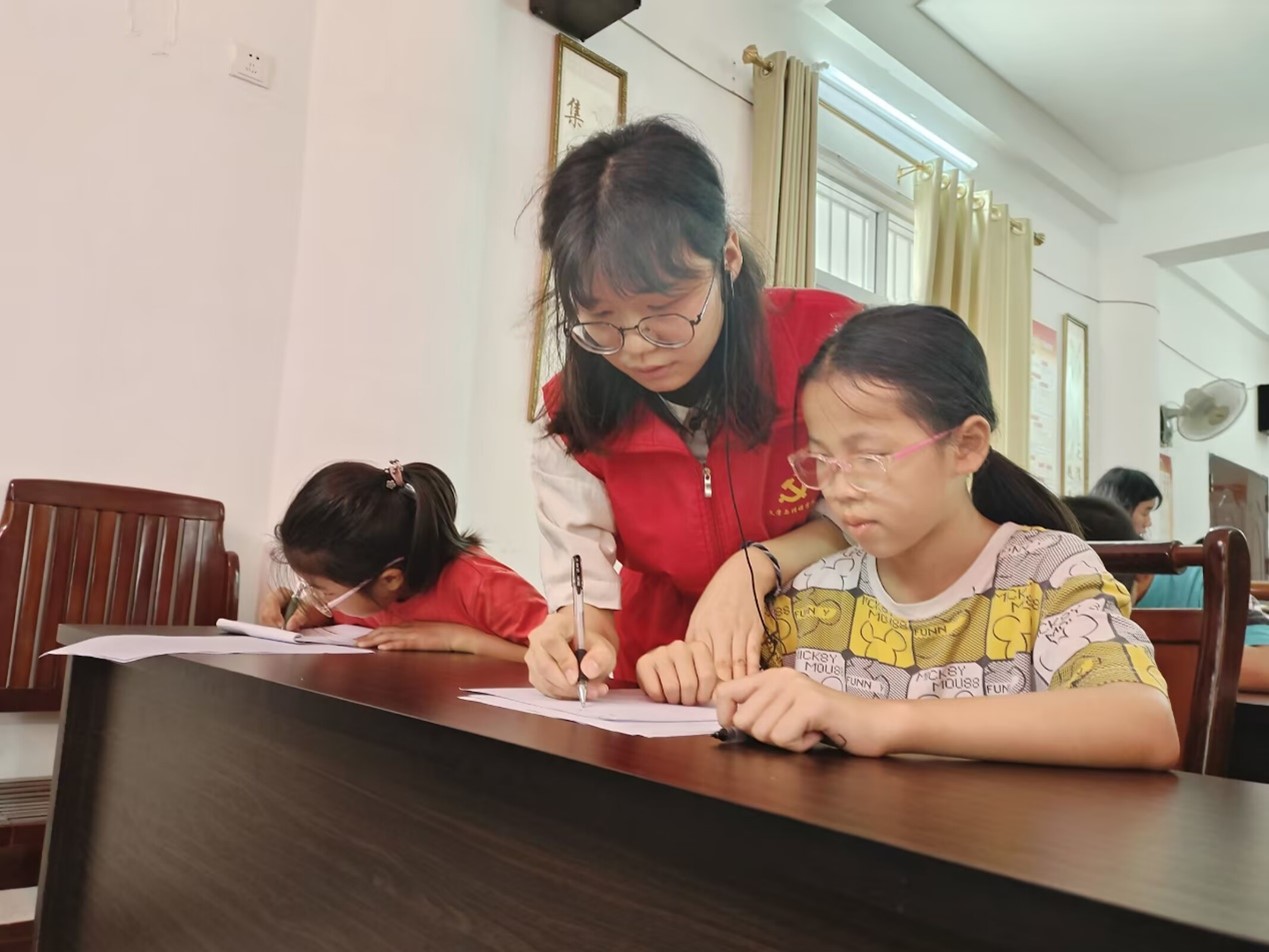 本站讯 7月13日,yL23411永利集团国学支教实践团在玉林市茂林镇鹿峰社区继续开展以“学习党的二十大,国学经典伴成长”为主题的支教活动。