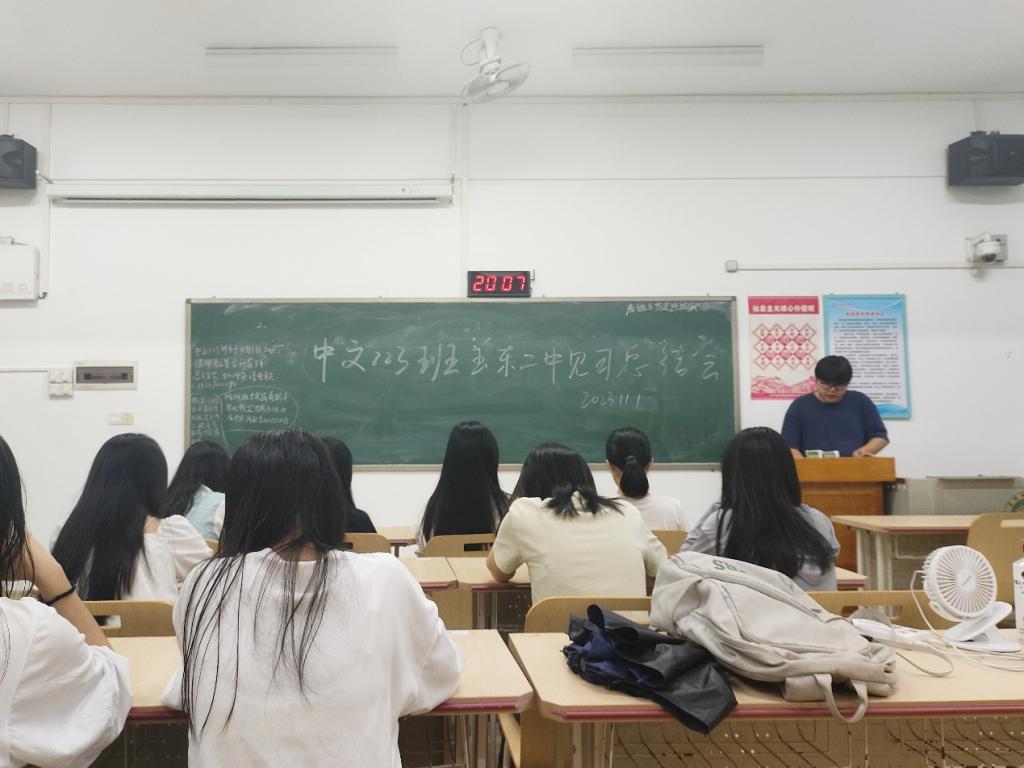 本站讯 为分享见习的经验与感受,总结见习收获。11月1日晚,我院汉语言文学223班在我校东校区至善楼606教室开展见习总结会。此次活动由该班班长邓宇轩主持,汉语言文学223班实践周带队教师蒋世凤、该班全体学生参加。
