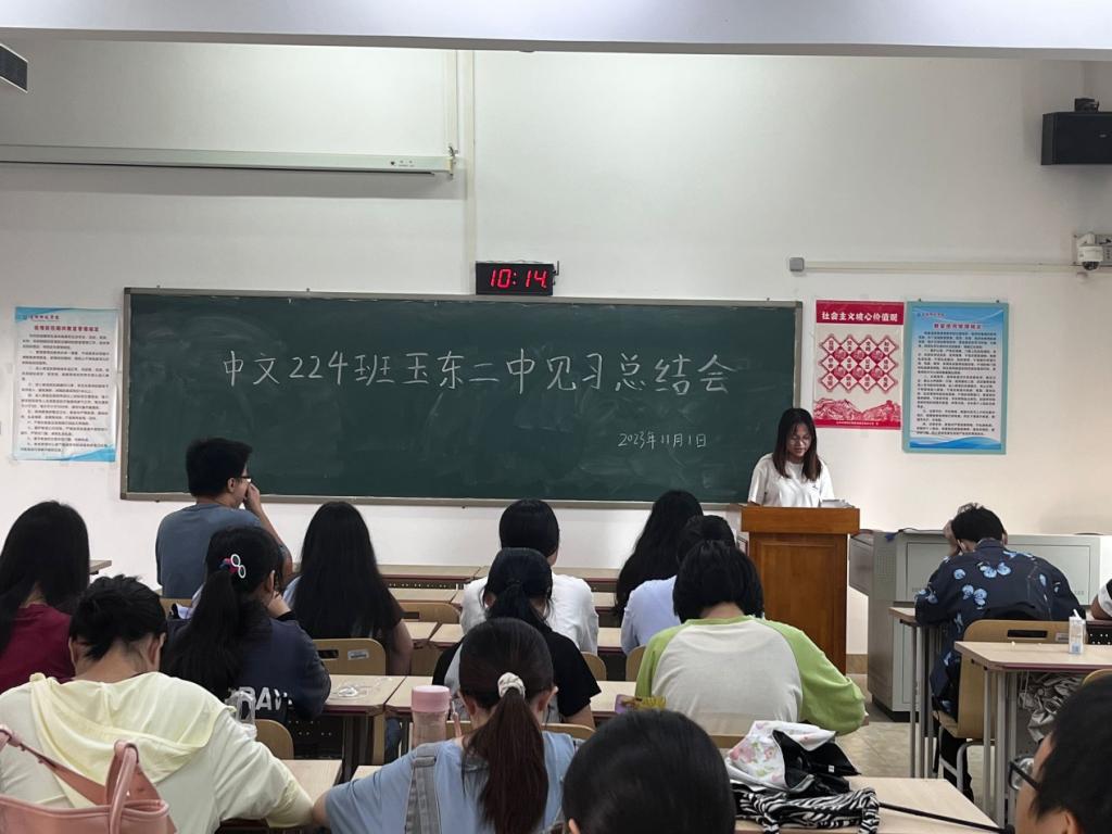 本站讯 为提升汉语言文学专业师范生教学能力、实践能力和综合素质,帮助师范生明确教师的职业意识和职业要求。11月1日早上,我院汉语言文学224班在我校东校区至善楼303教室召开实践周教育见习总结会。本次班会由该班班长朱乔宇主持,班主任刘维及该班全体学生参加。