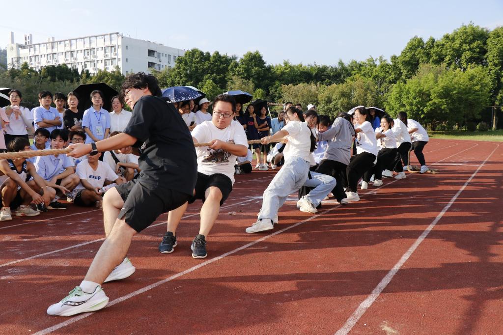 作为院运会中的最后一个项目,学生拔河还未开始,场边便已围满了观众。比赛还未开始,选手们就已经做好了准备,抓紧麻绳,重心下沉,纷纷摆出最佳发力姿势,蓄势待发。