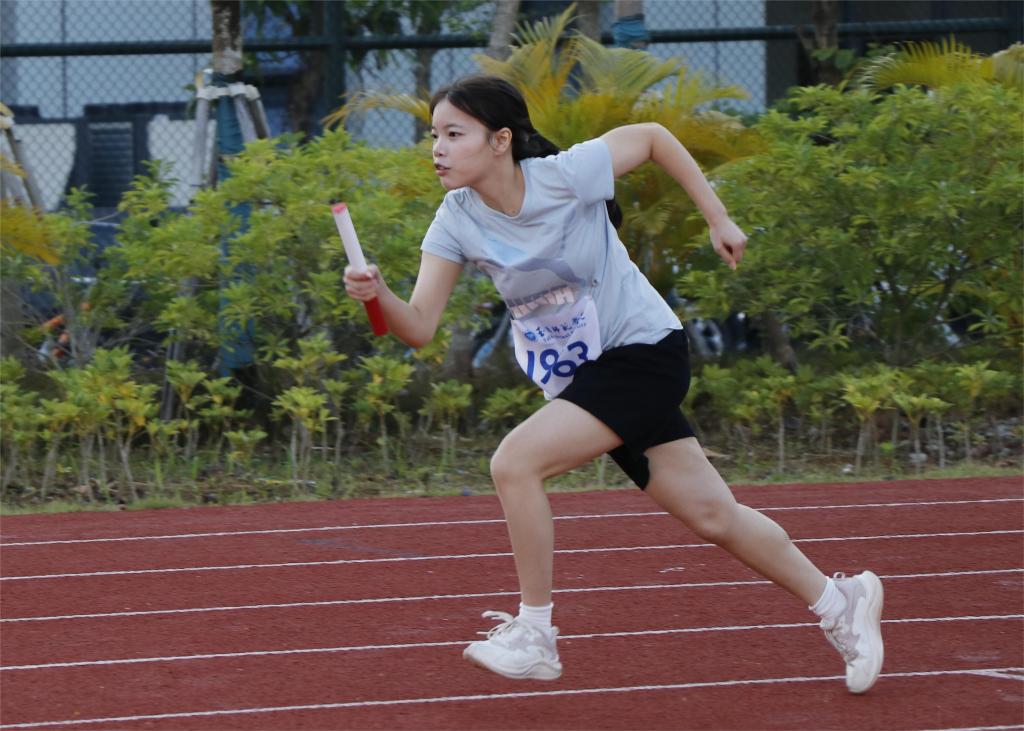 比赛开始前,我院选手们积极进行热身准备。随着裁判一声令下,第一棒选手梁雪连奋力向前冲去,较于其他跑道的选手稍稍落后,很快被赶超。我院选手们配合默契,第一棒与第二棒顺利交接,第二棒选手王冰接到接力棒后向前全力冲刺。