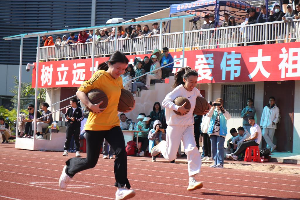 比赛开始前,我院运动员们积极做好赛前准备,轻跳、侧压腿、活动筋骨,展现出自信满满的精神状态。随着裁判员口令响起,比赛正式开始。运动员们双手紧紧抱住篮球,奋力奔跑,场外观众更是情绪高昂,不断为场上运动员们加油呐喊。接力运动员全神贯注,稳稳接住队友的传球,迈开双腿冲向终点。看台上振奋人心的鼓声将比赛的气氛推向高潮,加油助威声此起彼伏。