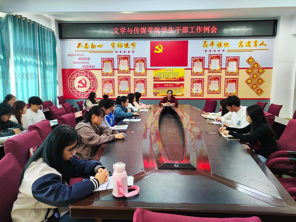 本站讯 11月21日中午,我院在东校区至善206党员活动室召开我院学生干部工作例会。我院团委书记秦爽,团委会、学生会主席团成员及各部门负责人参加本次会议,会议由学生会执行主席罗军富主持。