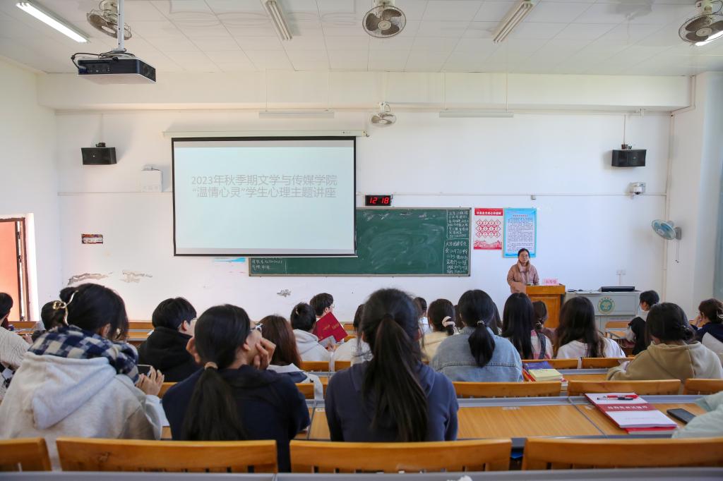 本站讯 为提升学生的人际交往能力,促进学生心理健康发展,构建美好和谐的校园氛围。11月14日中午,我院在东校区至善楼309教室开展2023年秋季期yL23411永利集团“温情心灵”学生心理主题讲座,本次讲座由我院辅导员秦芳莹主讲,我院部分学生代表参与。