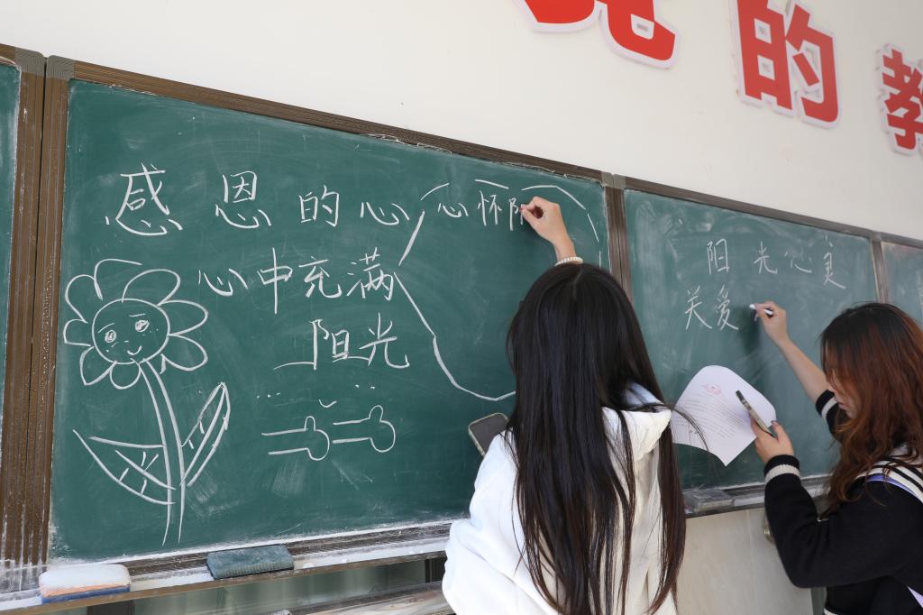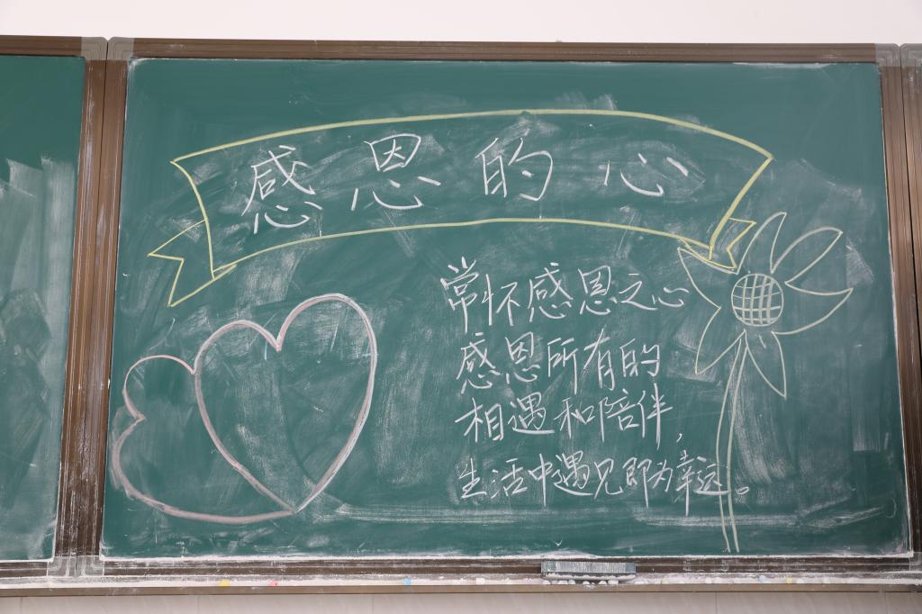 本站讯 为了做好学生心理健康教育工作,宣传心理健康的必要性,11月20日,我院在东校区至善楼师范生专业技能训练点开展以“感恩的心”为主题的黑板报心理宣传活动。