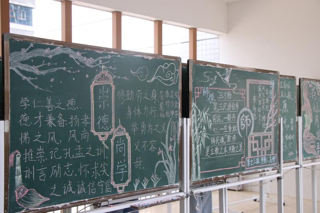 本站讯 为了进一步落实习近平总书记关于教育的重要讲话精神,提高我校师范生教学技能,9月23日下午,我院在东校区至善楼六楼黑板长廊举行主题为“挥墨丹青绘桃李,修德尚学育心灵”的黑板报设计大赛。本次大赛由我院教师周于飞指导。