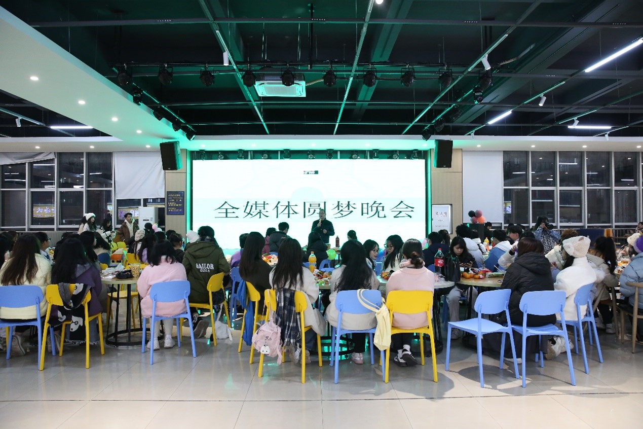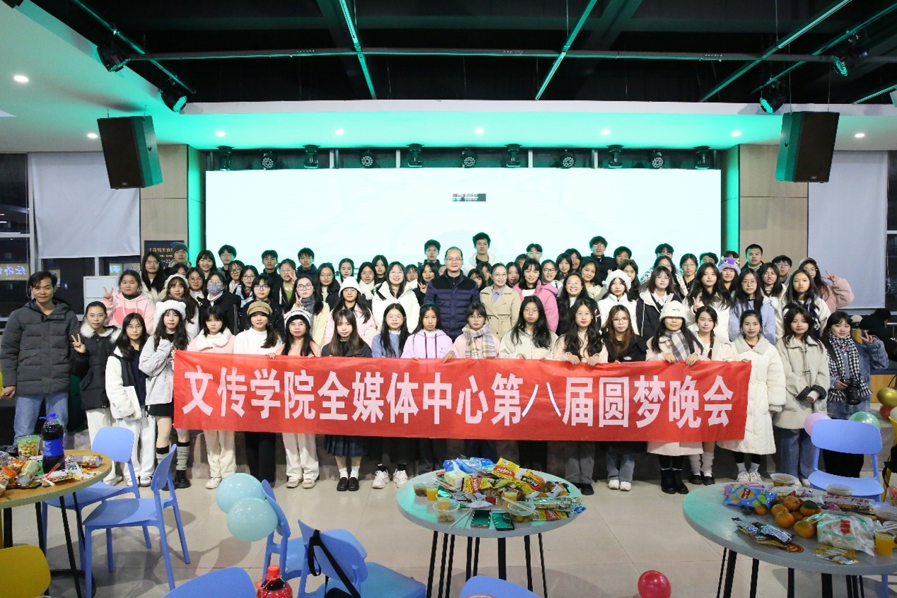 本站讯 12月23日晚,全媒体中心第八届圆梦晚会在东校区千喜鹤美食城三楼举行。我院党委书记冯健秋出席,团委书记秦爽,全媒体中心指导老师陈冬业、全媒体中心负责老师韦艳,辅导员秦芳莹、吕慧渝、覃梦瑶以及全媒体中心成员共同参加了此次晚会。晚会由全媒体中心成员黄艳媛、李晶晶主持。