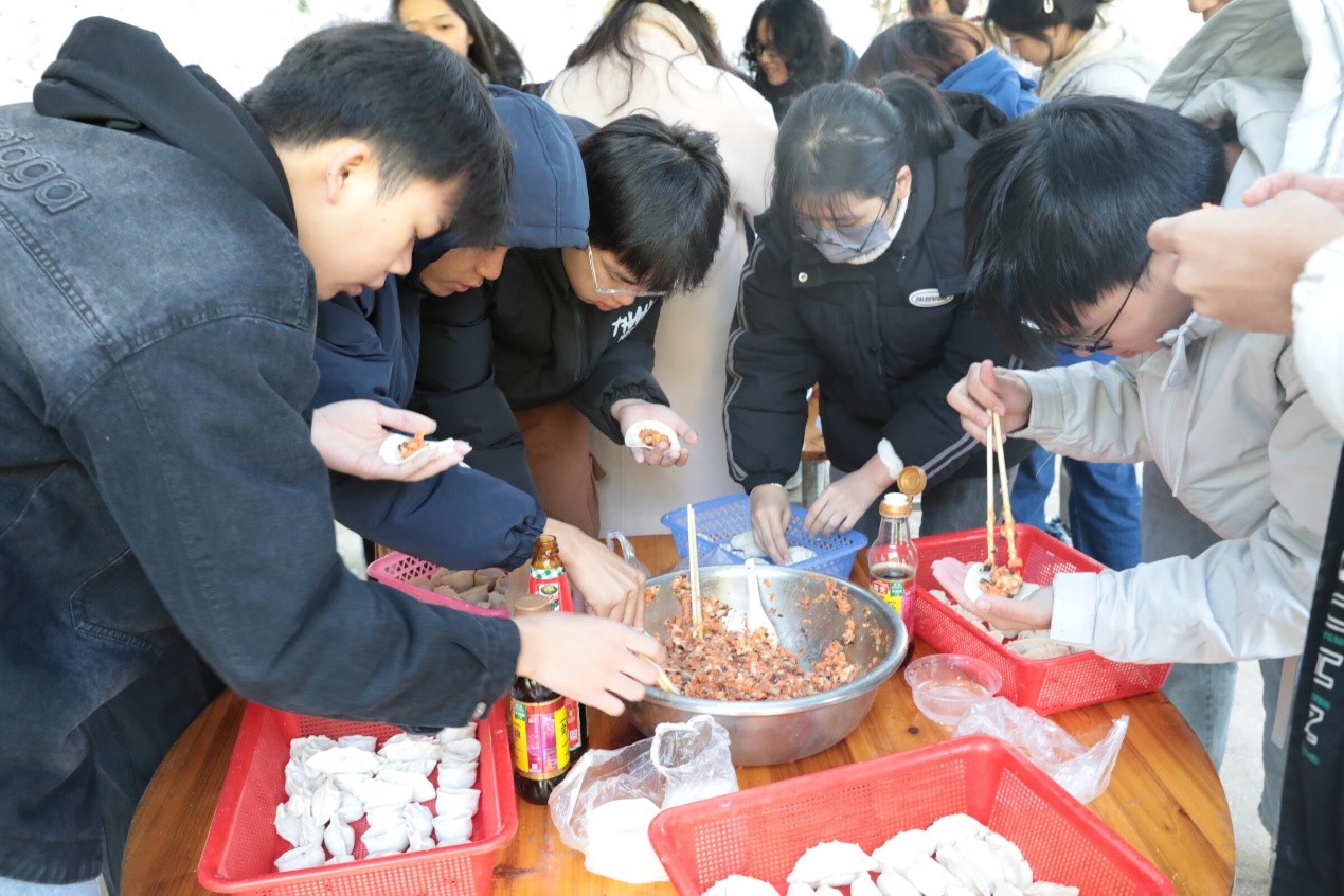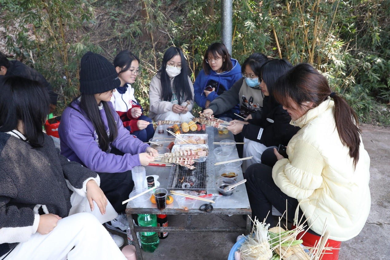 活动开始,学生干部们分团围坐,每桌成员都分工明确,有人负责烧烤,有人负责刷酱。大家有说有笑,在愉悦的氛围中进行着烧烤活动。在烧烤的同时,部分学生干部围成圈进行包饺子、蒸饺子活动。待饺子蒸熟后,他们分享给在座的师生们品尝。此外,活动过程中,还有老师及学生代表进行精彩的才艺展示,现场氛围轻松而活跃。