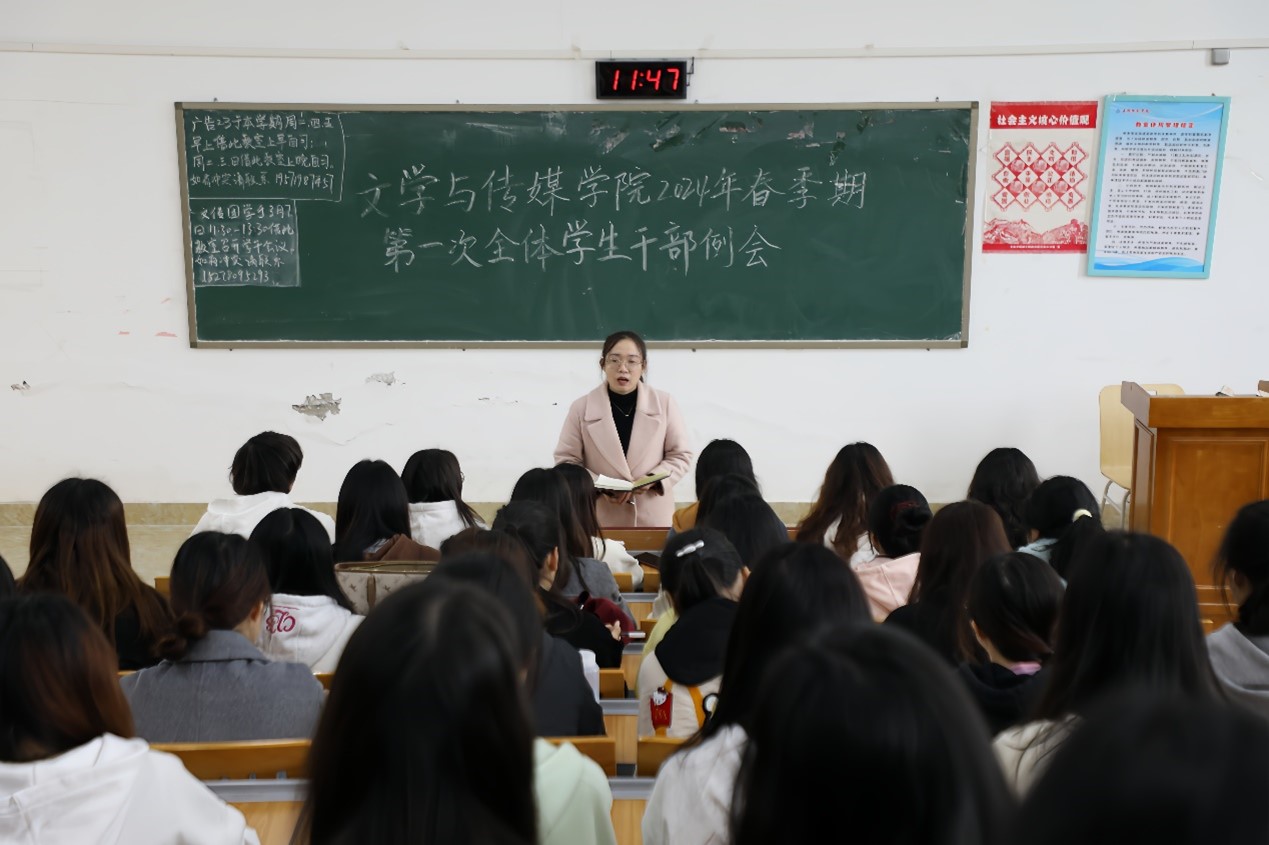 本站讯 为加强学生干部队伍建设,更好地开展新学期各项工作,3月7日上午,我院在东校区至善楼308教室召开2024年春季期第一次全体学生干部例会,本次会议由我院团委书记秦爽主持,全体学生干部共同参与。