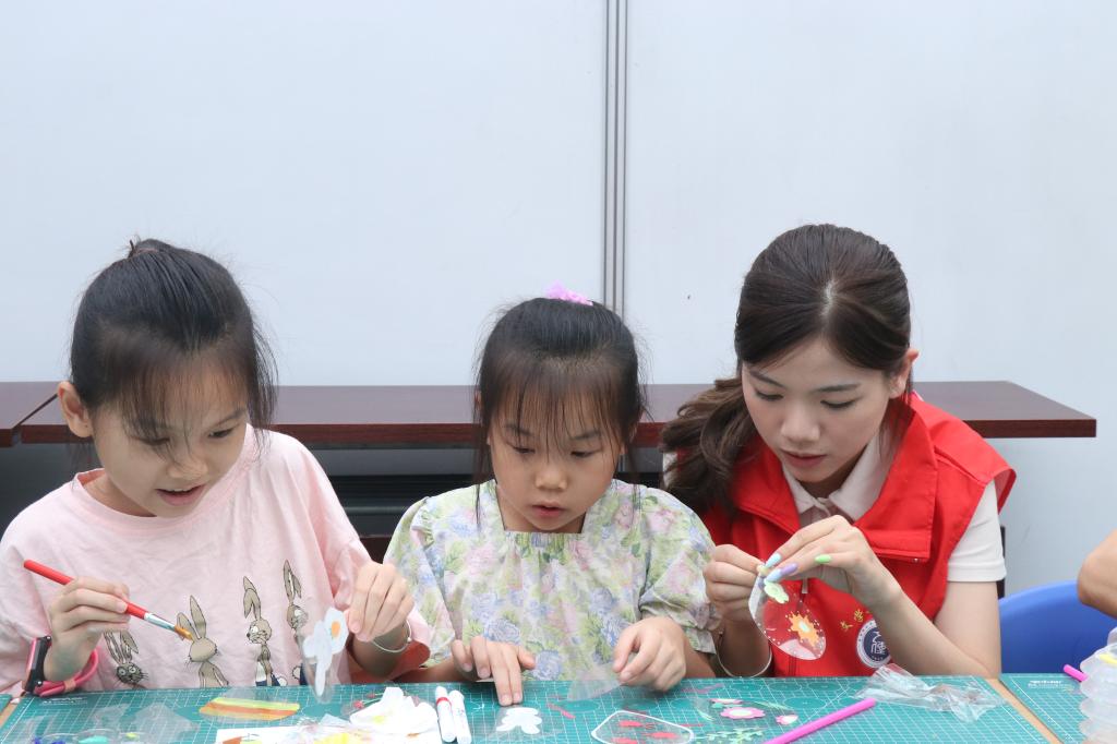 在手工制作环节,小朋友们在志愿者们和家长的协助下制作了手工风车。