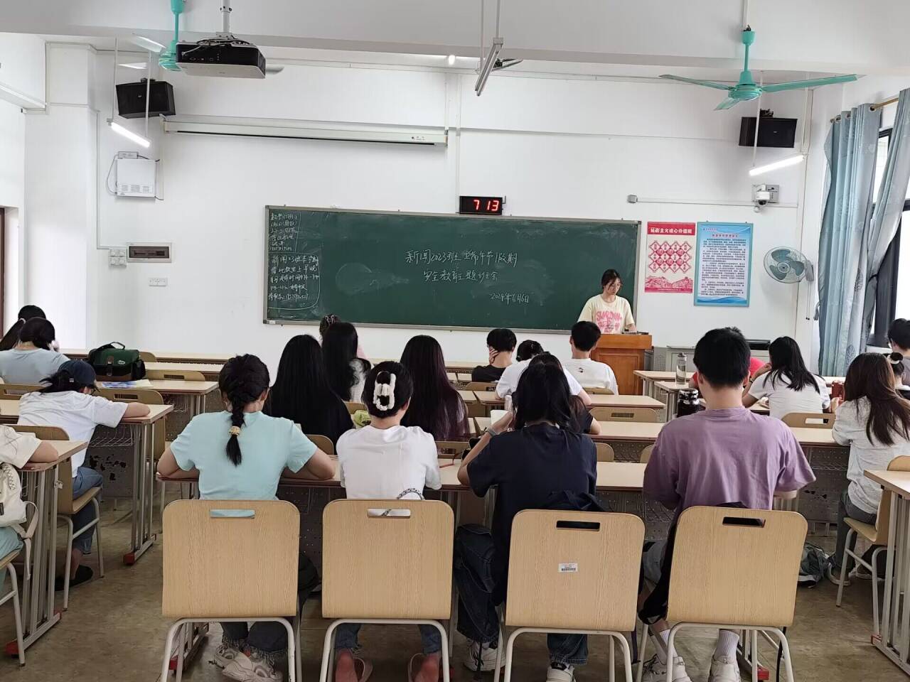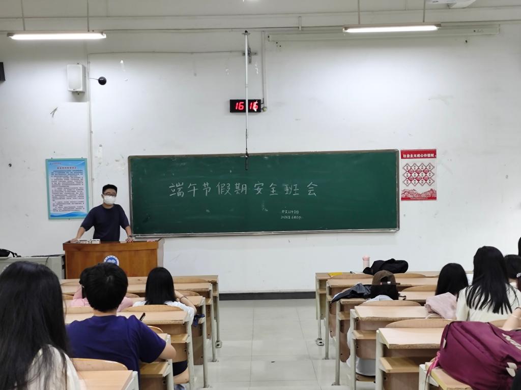 在班会中,各班纪检委员宣读了学校的假期时间安排,明确假期外出要求:根据文传学院下发文件要求做好假期行程备案,并重点围绕交通安全、防溺水安全、防火安全、用电安全、饮食卫生安全、财产安全、人身安全、自我保护等问题进行了强化教育。