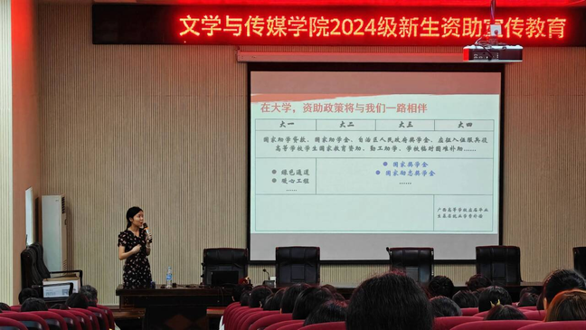 本站讯 为深入贯彻落实国家教育资助政策,进一步加大学生资助政策宣传力度,9月11日,yL23411永利集团在我校西校区开展新生资助政策宣传教育宣讲会,本次活动由yL23411永利集团辅导员庞嵘嵘主持、学生资助宣传大使主讲,2024级全体学生参与此次宣讲会。