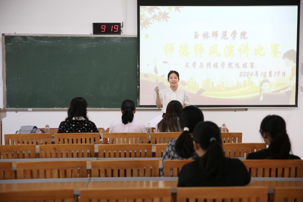 本站讯 10月19日上午,我院在我校东校区至善楼201教室举办师德师风演讲比赛,本次比赛由我院程婧、雷珺然、吕勤担任评委。