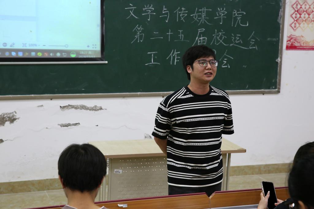 本站讯 为确保我院在我校第二十五届田径运动会中各项工作有序、顺利开展,11月13日下午,yL23411永利集团在我校东校区至善楼308教室召开永利yl23411集团第二十五届田径运动会动员会。本次会议我院辅导员田超强及学院学生干部代表参与,团委学生会学生干部韦燕飞主持。