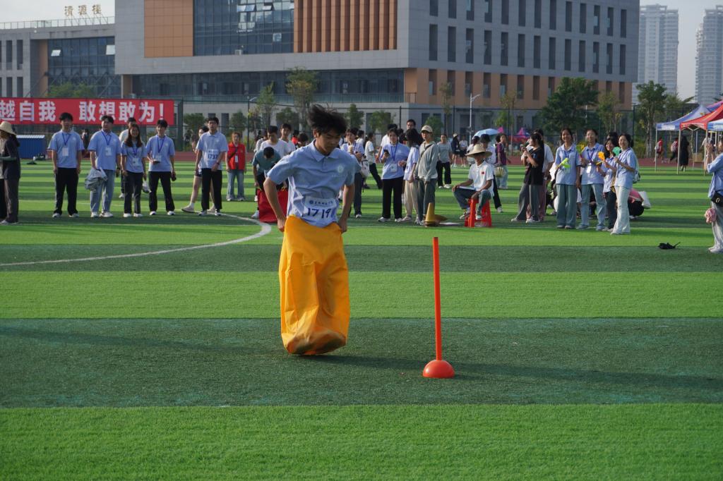 本站讯 11月16日上午,我校第二十五届运动会袋鼠跳接力赛在东校区新田径场举行。各个学院的参赛队伍齐聚一堂,整个体育场上洋溢着饱满的热情与充沛的活力。