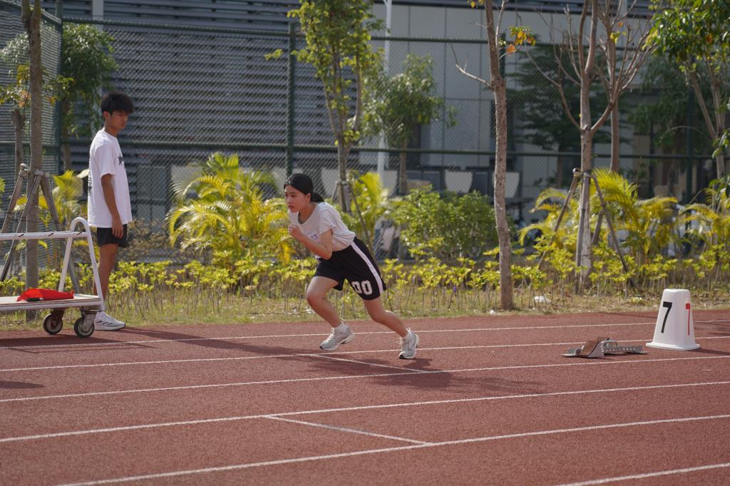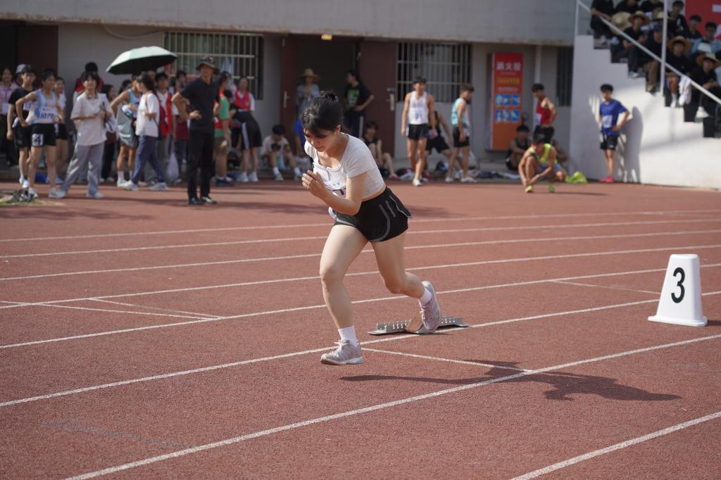 随着“砰”的一声枪响,参赛选手瞬间冲了出去。我院选手陈永媛一马当先,即使后面被一名选手追上,也始终保持良好心态,用力挥动双臂,双腿大步向前奔跑。我院选手石扬翠在赛场上冲劲十足,不断反超其他选手。在后半程,由于体力的消耗,选手们的速度减缓,但石扬翠依旧咬牙坚持,用力绷直双腿向前冲刺。