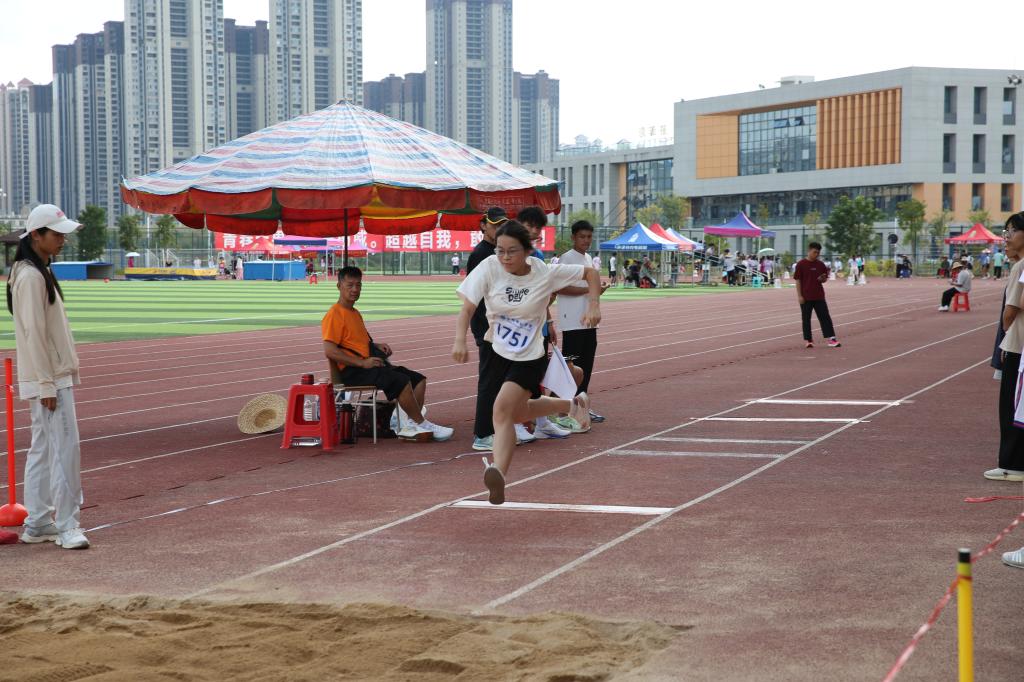 随着裁判员的一声令下,比赛正式开始,助跑线上的运动员们迅猛冲了出去,快速起跳,借力腾空。我院选手韦嫣嫣快速助跑,奋力起跳,在空中划过一道漂亮的弧线后稳稳落入沙坑。陈丽婷也毫不逊色,她眼神坚定,助跑节奏恰到好处,起跳轻盈有力。她们用勇气和技巧演绎着跳远的魅力,成为赛场上令人瞩目的焦点。