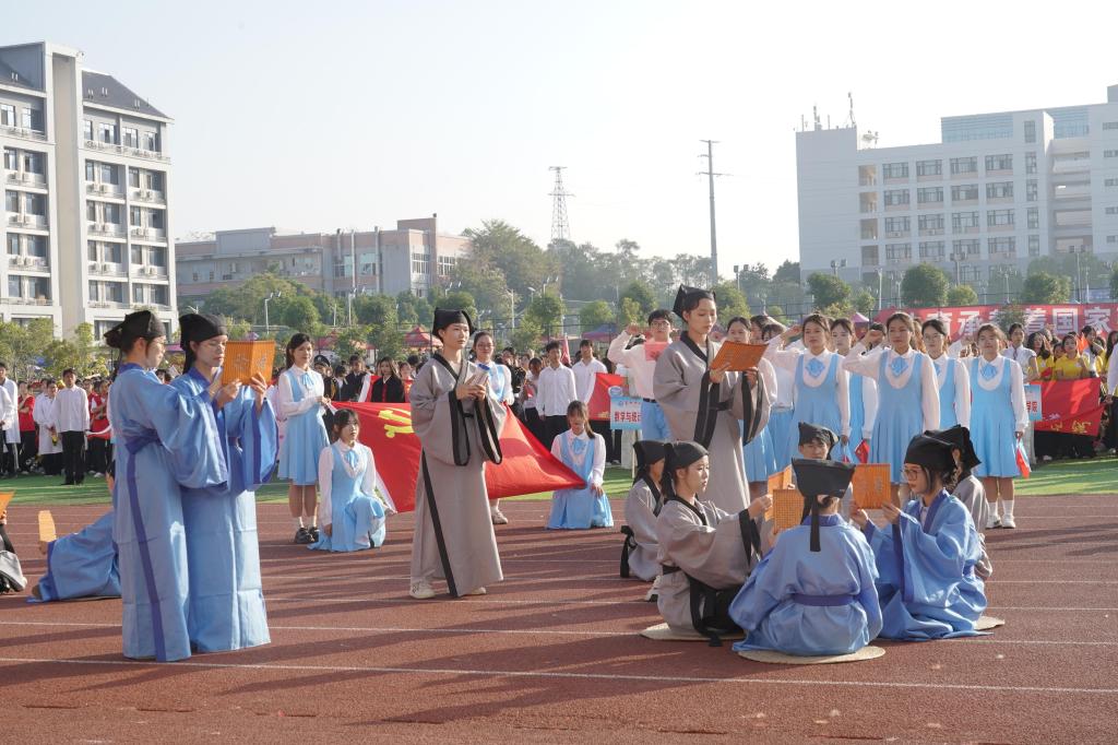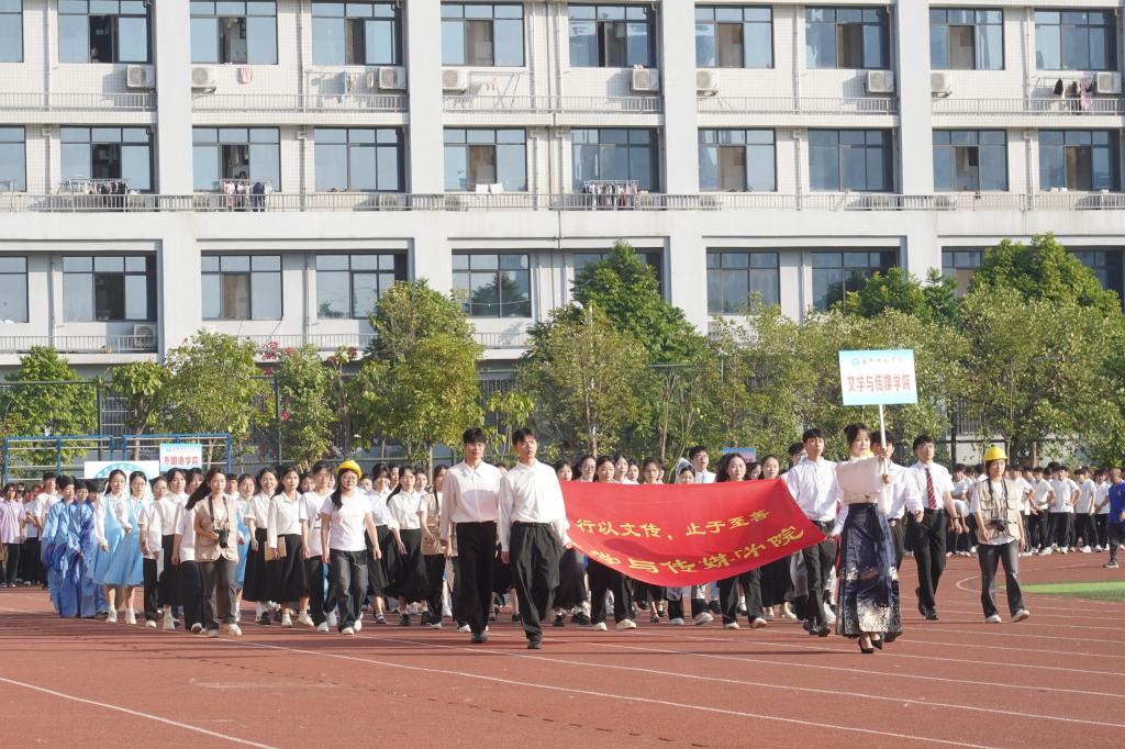 阳光下,我院学生们昂首挺胸,精神饱满,伴随着精心设计的表演,方块队不断变换阵型,动作整齐划一。孔孟学子、教育家、全媒体工作者、当代青年,不同身份的角色演绎诠释着文传人的无限可能。“志存高远,脚踏实地。只有出发,才会抵达!”的口号铿锵有力,尽显文传风采,赢得现场观众阵阵掌声。