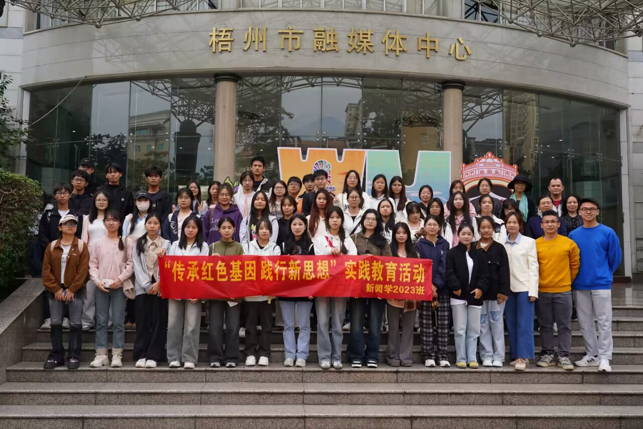 新闻学2023班师生和梧州市融媒体中心工作人员合影
