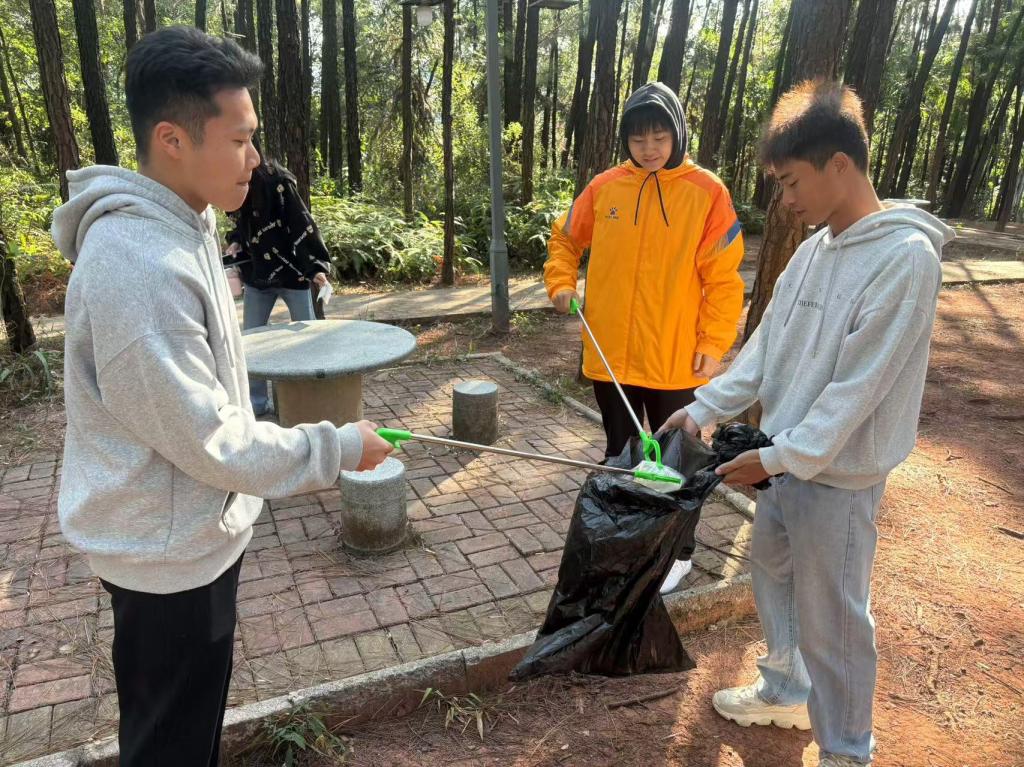 上午,王玮娜带领《生态传播》选课学生前往挂榜山旁松树林进行清理小松林环保公益活动,活动中学生们积极参与并清理松树林中的遗留垃圾。同时,学生们在挂榜食府旁开展物归“缘”主——以物换物二手交易市集活动。