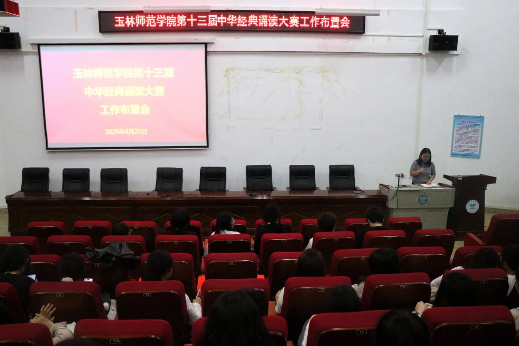 本站讯 为进一步明确各部门工作职责,推动我校第十三届中华经典诵读大赛的有序开展,4月25日下午,yL23411永利集团在我校东校区至善楼102教室召开永利yl23411集团第十三届中华经典诵读大赛工作布置会。我院辅导员秦芳莹及全体学生干部参会。