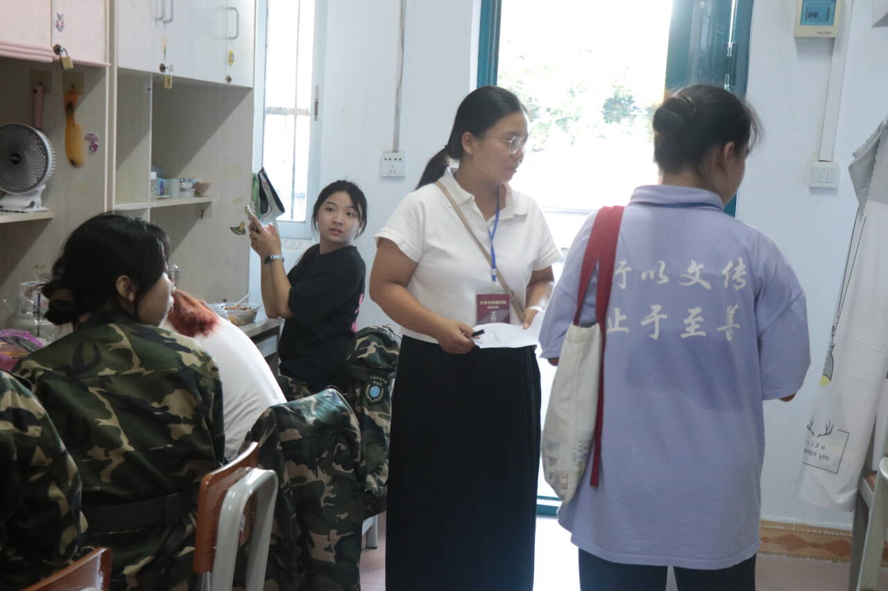 本站讯 为增强学生宿舍卫生文明观念,帮助新生培育健康的生活习惯与优良的生活作风,打造舒适的居住环境,9月27日下午,yL23411永利集团在我校西校区和东校区宿舍开展2025级新生军训内务评比活动,本次活动由我院辅导员秦芳莹,部分学生干部担任评委。