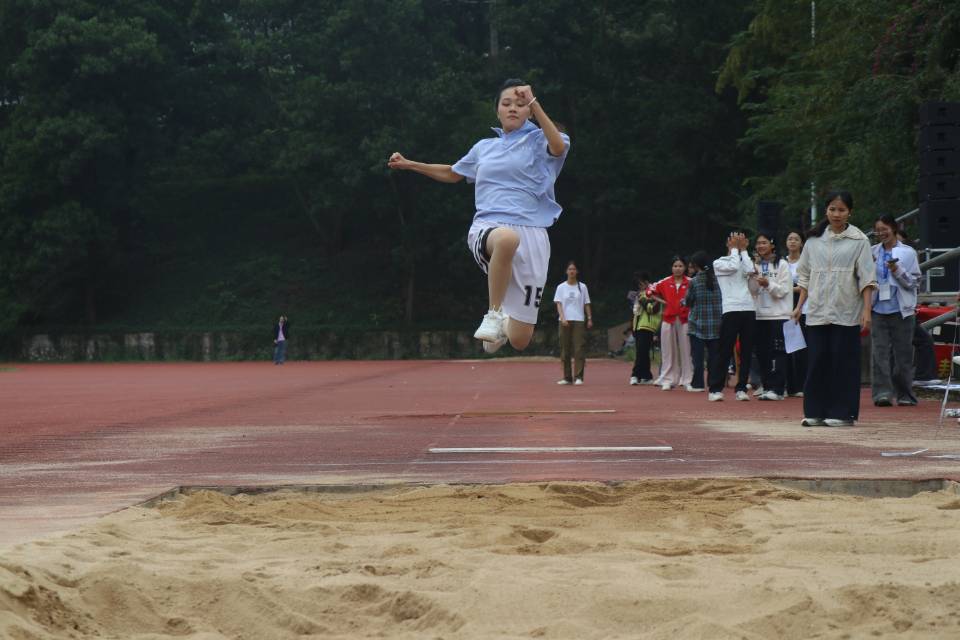经过激烈的角逐,女子跳远预决赛圆满结束。汉语言文学253班的伍洁以3.39米的成绩取得冠军,汉语言文学241班的吴环以3.23米的成绩取得亚军,汉语言文学233班的黎星焰以3.22米的成绩取得季军。