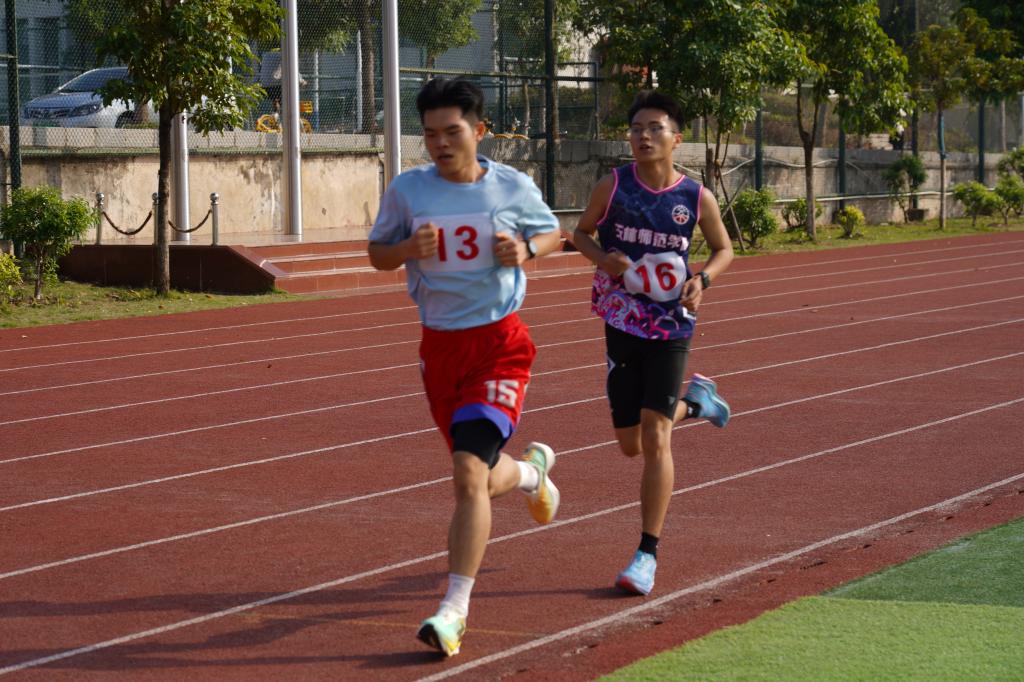 赛前,运动员们积极进行开合跳、弓步压腿、踝关节远动等热身活动,比赛快开始时,运动员们依序站在对应跑道上,随着裁判员一声令响下,他们立刻冲出起跑线,场外观众的加油声、欢呼声也此起彼伏,为运动员们加油打气。起初大家都意气风发,向前奔跑,随着赛程的发展,运动员们开始面临体力的考验。在第1组的卢创威从一开始就强抢占前列,咬紧前一名,稳健的步伐始终如一,不屈的毅力让他全场稳步向前,最后他取得了第三名的佳绩。在第2组的颜唐和虽然刚开始没占先位,却也尽力追赶中,即使没进前列但依然保存自己的节奏,最后虽然没取得名次但也顺利跑完了全程。