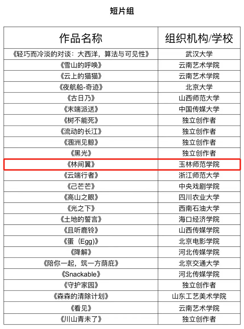 第31届大学生电影节“重新发现计划”单元短片组入围名单