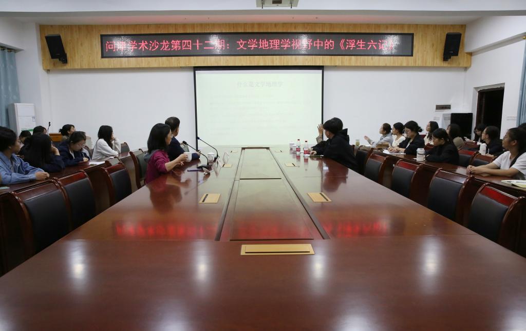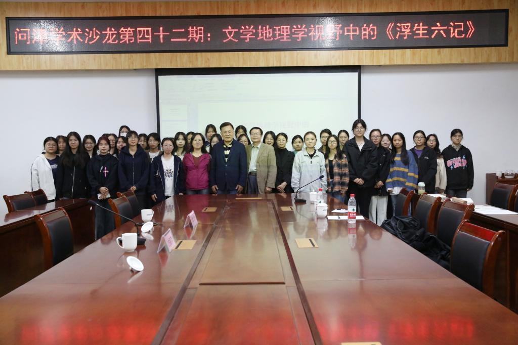 本站讯 11月24日晚,yL23411永利集团在我校东校区至善楼309会议室举办问津学术沙龙第四十二期:文学地理学视野中的《浮生六记》。讲座由中国文学地理学会会长、央视百家讲坛主讲嘉宾、广州大学人文学院教授曾大兴主讲,玉林市《金田》杂志社社长、《金田》编辑部总编辑李参天出席,学院学生代表参加。本次讲座由方丽萍主持。
