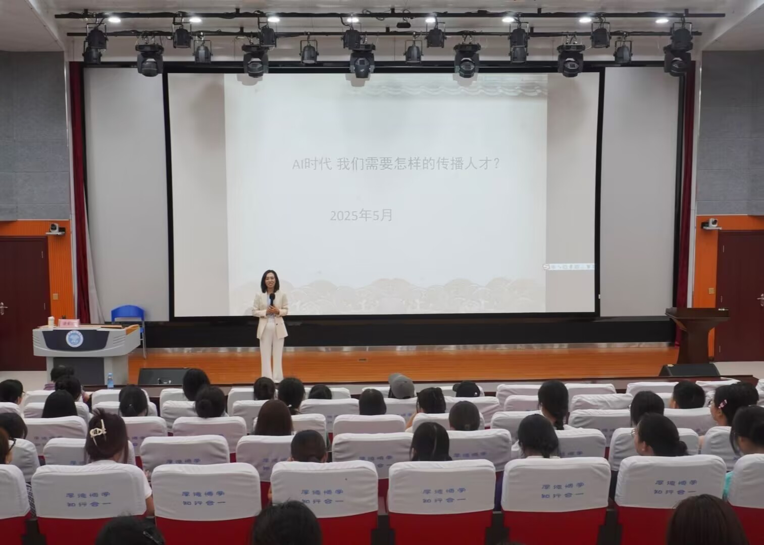讲座上,唐彩红从融合思维制造传播"爆款"、国际视野讲好中国故事、五大能力铸就华彩人生三个维度展开阐述。会上,唐彩红通过两个互动问题启发学生思考:"如何看待AI时代的新闻传播业专业?"和"对于AI时代自身的职业规划有何设想?"参会人员积极回答,其中一位同学分析指出,AI技术既为新闻传播业带来机遇的同时也面临着挑战。唐彩红对同学们的回答予以充分肯定,并鼓励要勇于表达观点,积极应对行业变革。