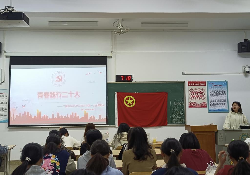 本站讯 为了让学生深刻领悟党的二十大精神,3月17日上午,我院广播电视学2022班于我校东校区至善楼607教室展开“学习二十大、永远跟党走、奋进新征程”主题团日活动。此次活动由该班班长兰玉勤主持,该班全体学生参加。