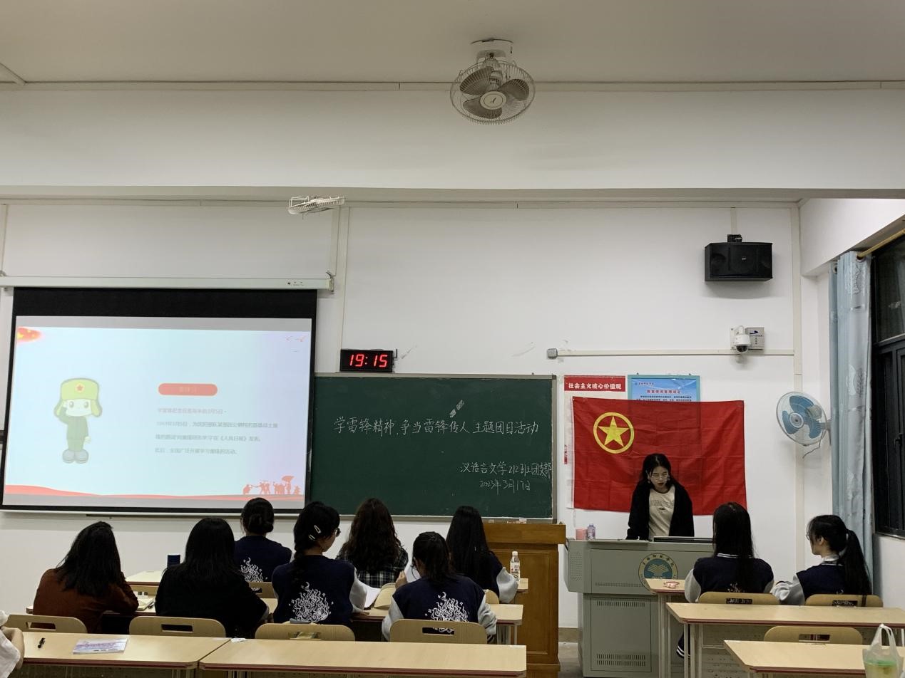 本站讯 为响应学习雷锋精神的号召,深入贯彻“为人民服务”的崇高理念,3月17日晚,我院汉语言文学212班于我校东校区至善楼403教室开展“学雷锋精神,争当雷锋传人”主题团日活动。本次活动由该班纪律委员蒲柯郁主持,该班全体学生参加。