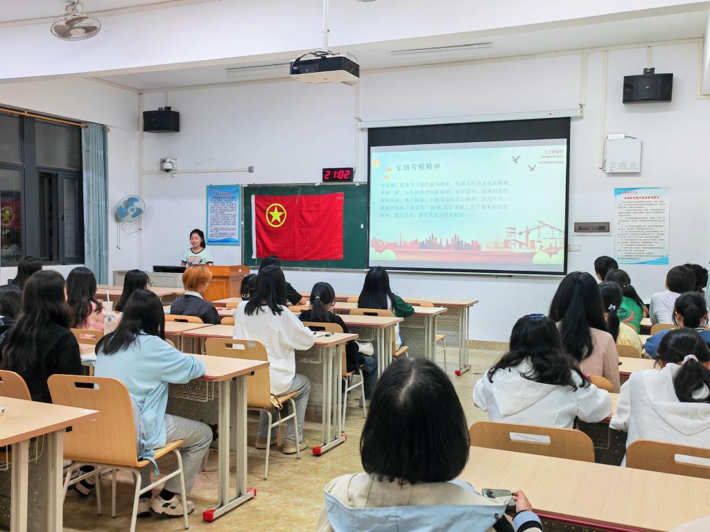 本站讯 为了深刻领会劳动价值意蕴,坚定劳动光荣信念,5月8日晚上,我院新闻学2021班在至善楼405教室开展“弘扬劳模精神,劳动最光荣”主题团日活动。本次活动由组织委员倪晶晶主持,新闻学2021班全体同学参加。
