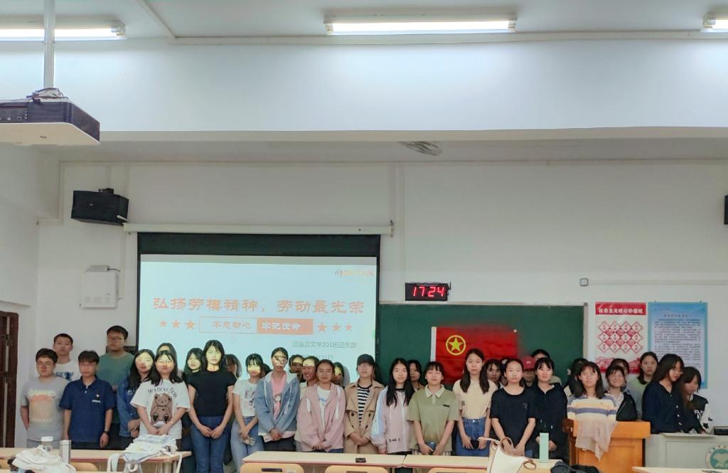 本站讯 为进一步弘扬劳模精神,引导学生们勤学善思、砺能笃行,以积极的心态面对新时代挑战。5月11日下午,我院汉语言文学201班在至善楼303教室开展“弘扬劳模精神,劳动最光荣”主题团日活动。本次活动由宣传委员杨廷香主持,该班全体学生参加。