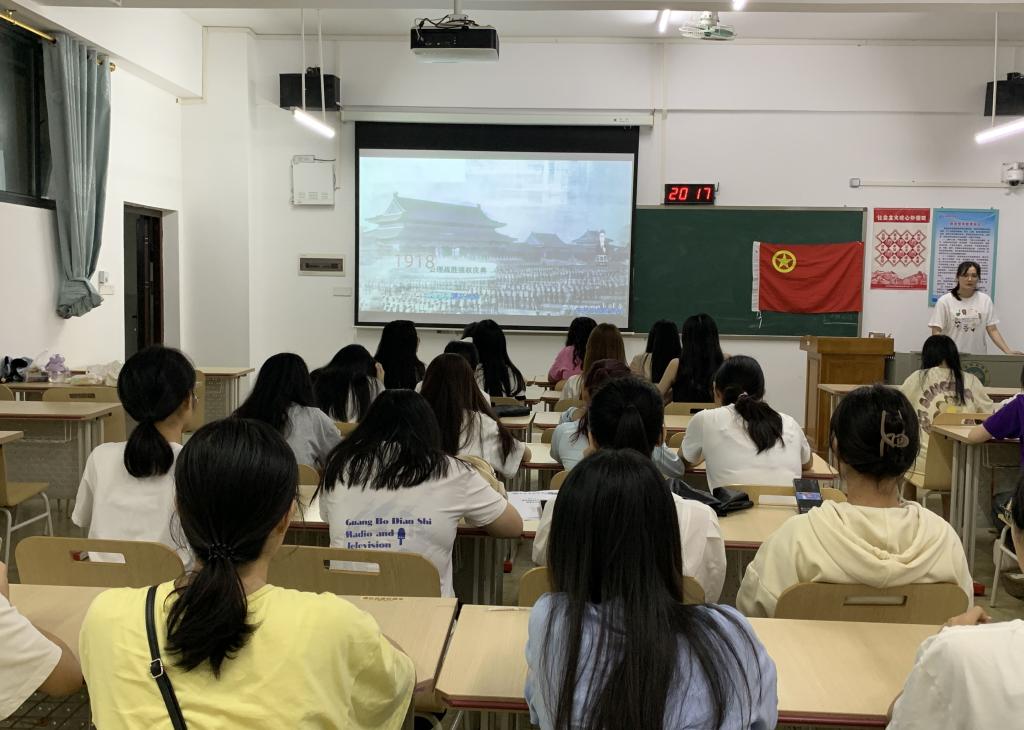 本站讯 为纪念五四运动,进一步弘扬五四精神,积极推进青年文化建设,激励学生们的爱国热情。5月15日晚上,我院广播电视学2020班于我校东校区至善楼504教室开展“纪念五四运动,发扬五四精神”主题团日活动。本次会议由该班组织委员韦佳彤主持,全体学生参加。