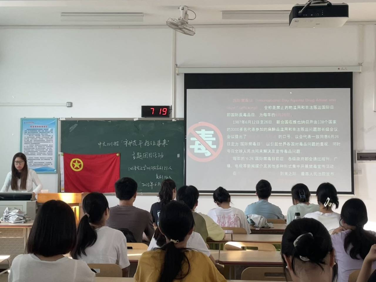 本站讯 为加强禁毒宣传力度,切实提高学生识毒、防毒、拒毒意识,全面推进青少年毒品预防教育工作,6月6日上午,我院汉语言文学221班于我校东校区至善楼405教室开展“守护花开,拒让毒来”主题团日活动。本次活动由班长李春云主持,该班全体学生参加。