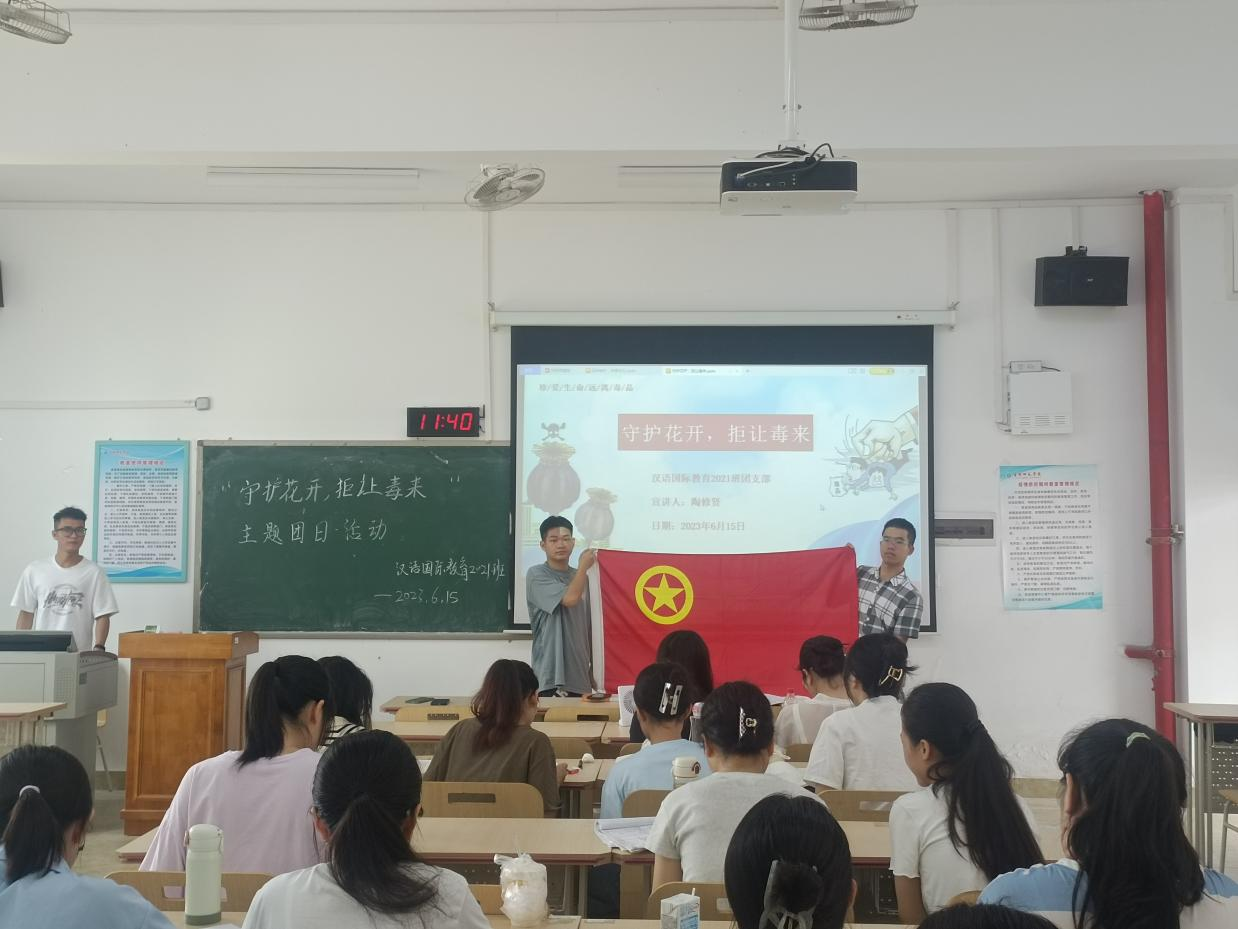 本站讯 为强化禁毒宣传教育,提高学生对毒品的认识和警惕性,树立拒绝毒品的坚固心理防线。6月15日上午,我院汉语国际教育2021班于我校东校区至善楼302教室开展“守护花开,拒让毒来”主题团日活动。本次团日活动由该班组织委员陶修贤主持,全体学生参加。