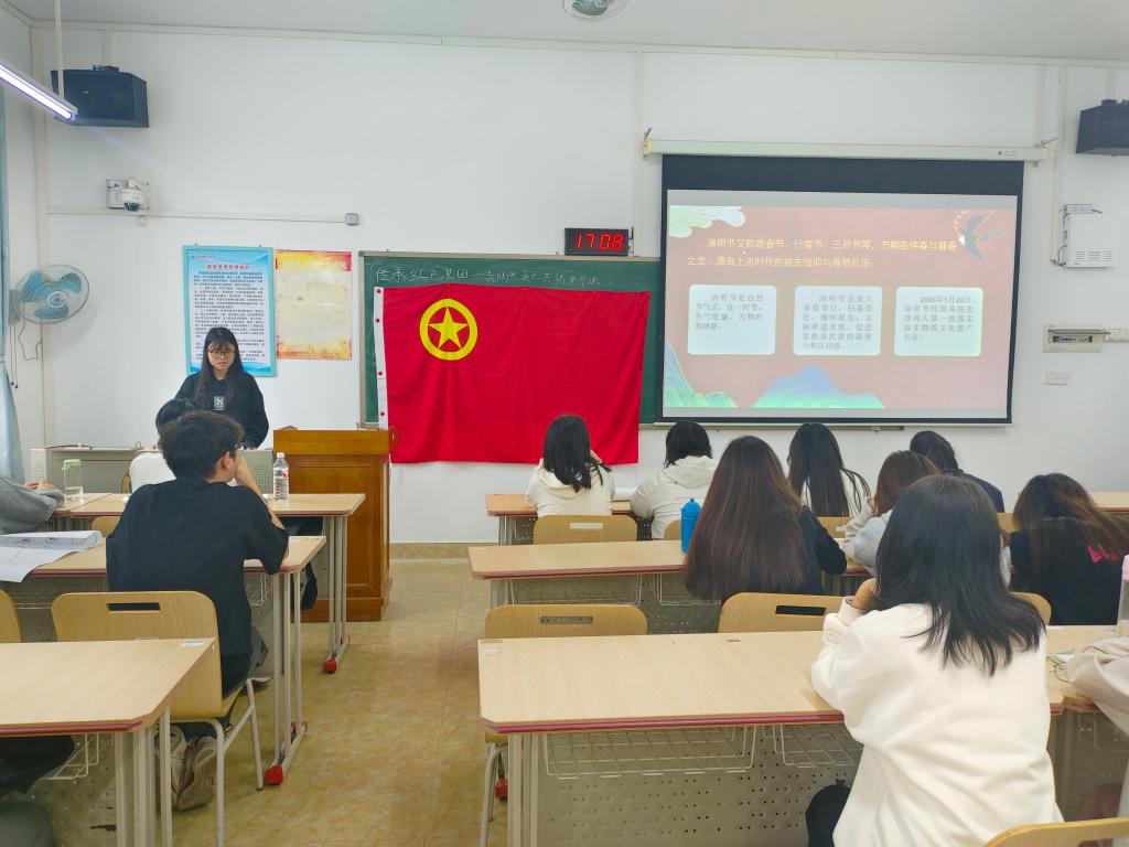 会上,各班团支书向学生们介绍清明节的节日起源、节日习俗以及节日相关的文化内涵,讲述了邱少云、黄继光、董存瑞等革命先烈的光荣事迹,告诉学生们要珍惜当下幸福生活,不忘先烈,努力奋斗。