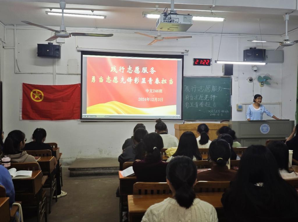 本站讯 为深入学习习近平总书记关于志愿服务的重要论述,激励青年学生积极参与志愿服务,12月3日至14日,yL23411永利集团各班级、社团分别在东、西校区各教室开展“践行志愿服务——勇当志愿先锋 彰显青春担当”主题团日活动。本次团日活动由各班级团支书、社团负责人主持,各班级团员、社团成员参加。