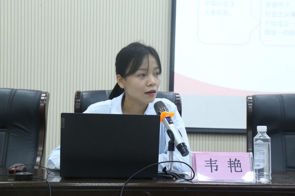此外,韦艳介绍了共青团的象征:团旗、团徽、团歌,并播放团歌,讲解了它们的设计寓意和历史渊源,增强了入团积极分子对共青团的认同感和归属感,坚定了他们入团的决心。