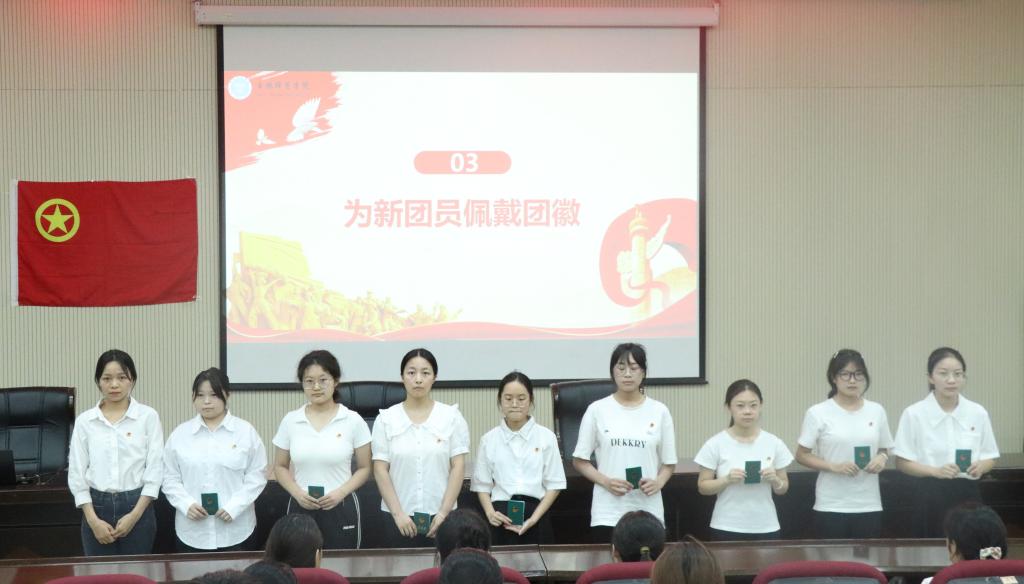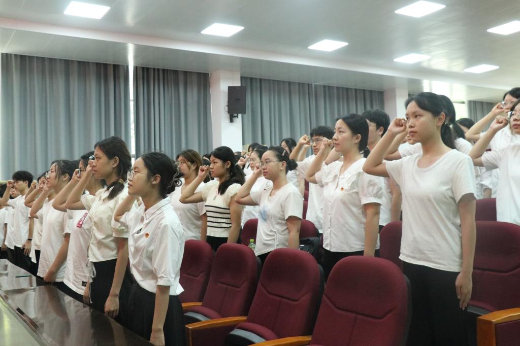 本站讯 6月10日下午,我院分团校于西校区学术报告厅举行2025年春季期新团员入团仪式。西区分团校班主任韦艳、学院团委组织部成员、团员代表及新发展团员参加活动。