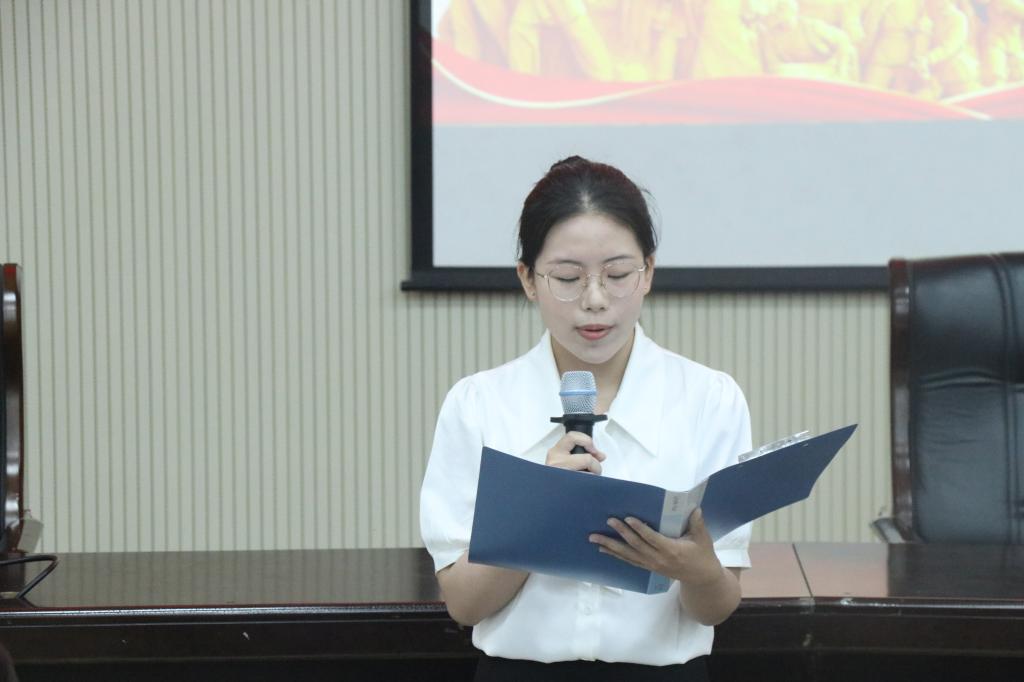 期间,唐丽雯作为新团员代表发言。她将习近平总书记的话语铭记于心,并以“乘风破浪会有时,直挂云帆济沧海”为格言,不怕困难,且坚守初心,向着心中的团组织靠拢,成就自我,突破自我,成为一名优秀青年优秀团员。